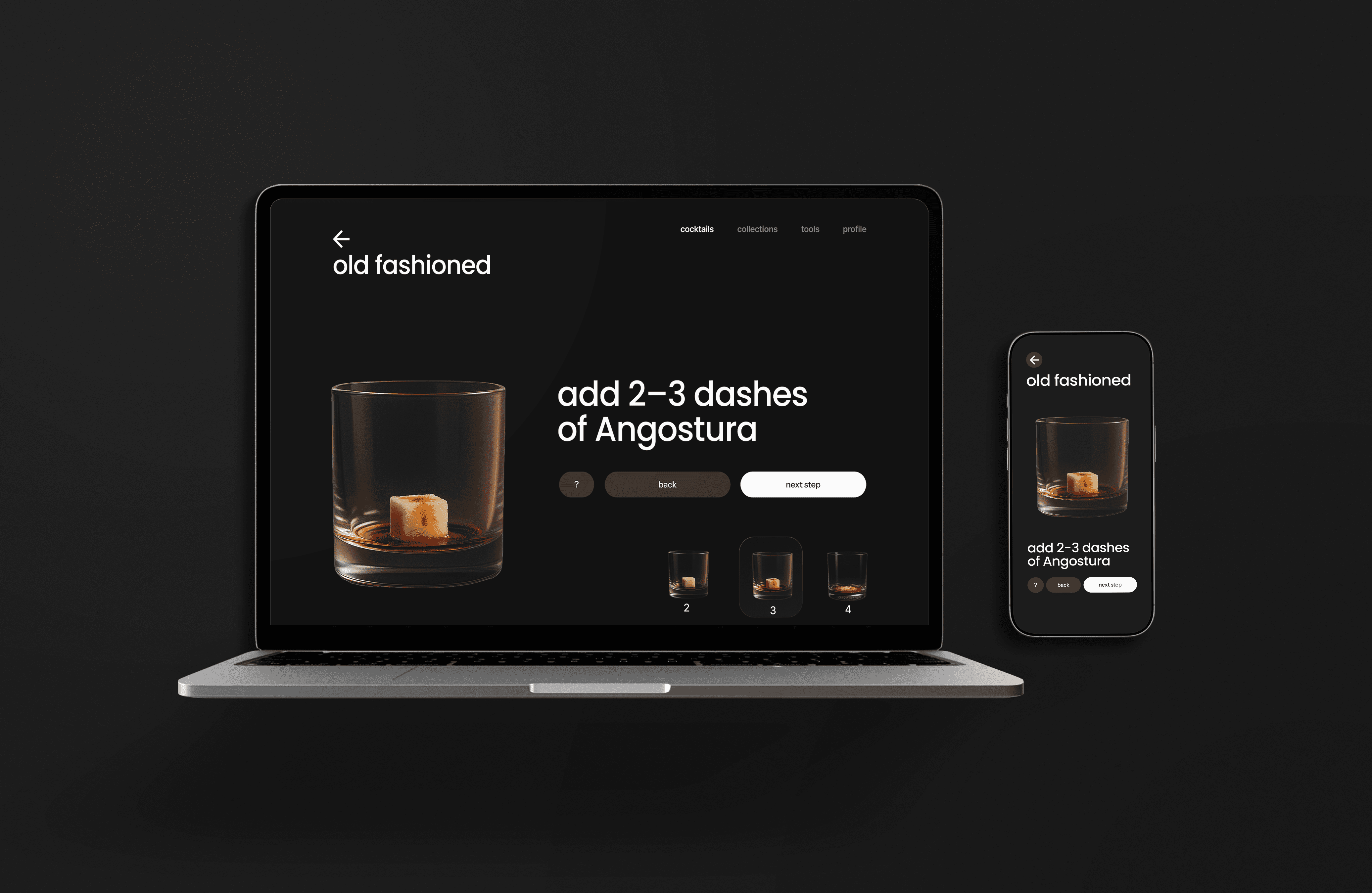 eine digitale Anwendung, die Anleitungen für Cocktails neu denkt: visuell geführt und mit Fokus auf Erlebnis